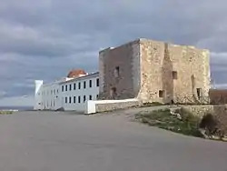 Adosada al santuario, formando una de las paredes del patio de entrada, hay una torre defensiva de planta tetraédrica construida en el año 1558 sobre una antigua atalaya que permitía advertir a la población, mediante señales de fuego, de la llegada de naves enemigas. Entre 1595 y 1835 el santuario fue un monasterio de frailes agustinos. Actualmente, desde 2018, el santuario es gestionado por una comunidad de religiosas de las Hijas de la Sagrada Familia de Barranquilla en Colombia[5] (anteriormente eran las religiosas Franciscanas Hijas de la Misericordia).