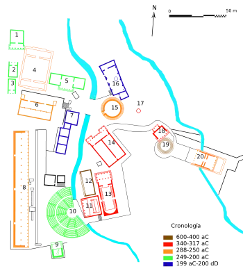 Vista general de los vestigios del Hierón desde el suroeste (plano, número 13).