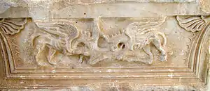 Capitel de la fachada oeste del propileo de Ptolomeo II: grifos devorando una cierva (Museo) (plano, número 20).