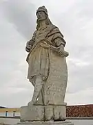 ![]() Vista de la iglesia y atrio con escalinatas y estatuas. | ||