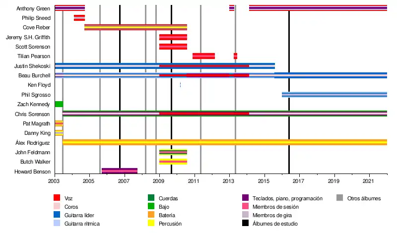 Actualmente están conformados por Álex Rodríguez, Chris Sorenson, Beau Burchell y Anthony Green. A pesar de que Green participó inicialmente de la banda, la abandonó para integrar Circa Survive. Cove Reber fue vocalista de Saosin entre 2004 y julio de 2010.[3]