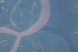 ![]() Saquena, desde el espacio, a orillas del río Ucayali