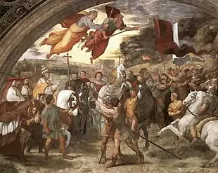 Después de haber conquistado y destruido Aquileia, los hunos procedieron a devastar todas las ciudades restantes de Venecia: en particular las ciudades de Concordia, Altino y Padua, cercanas a Aquileia, fueron destruidas, pero también las ciudades de Vicenza, Verona, Brescia y Bérgamo fueron atacadas y devastadas por los hunos sin que nadie se opusiera a su avance devastador.[13] Una vez devastada Venecia, los hunos invadieron la provincia de Liguria devastando Mediolanum (Milán) y Ticinum (Pavía) y las ciudades vecinas.[14][13] Después de haber devastado también las ciudades de Emilia, Atila se detuvo cerca del río Mincio, parece dudar en avanzar.[13] Parece que Atila estaba decidido a conquistar Roma.[13] Pero los historiadores eclesiásticos informan que fue detenido por una embajada dirigida por el Papa León I y que se encontró con Atila cerca del río Mincio.[15] Los historiadores eclesiásticos informan que Atila habría sido inducido por el temor del Papa León I a renunciar a la toma de Roma y abandonar Italia; llenan su narración con la supuesta aparición celestial de un anciano con vestimenta sacerdotal, probablemente San Pedro, que amenazó a Atila induciéndole a retirarse.Pero según Giordane, que utiliza como fuente al historiador Prisco di Panion, Atila renunció a la toma de Roma porque temía que le ocurriera lo mismo que a Alarico, que pereció pocos meses después de haber saqueado Roma; en resumen, temía que el saqueo de la ciudad trajera el mal a los que se atrevieran a profanarla.
