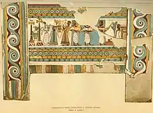 La variedad de trajes de los diferentes personajes puede representar los diferentes estatus jerárquicos de la sociedad minoica, o el mundo sobrenatural de la misma.[14]