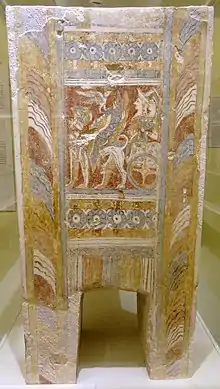 Hay larnax datados del Minoico reciente IIIB que representan carrozas que cargan el cuerpo del difunto. Este tipo de diseño se debe a una clara influencia micénica.[30]