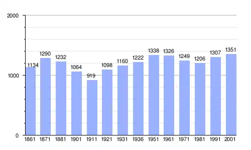 Gráfica de evolución demográfica de Sarconi entre 1861 y 2001 |