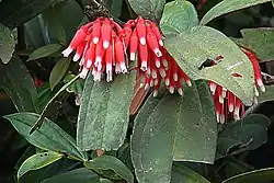 Son arbustos epífitos o terrestres. Hojas alternas, coriáceas, enteras, generalmente plinervias pero raramente pinnatinervias. Inflorescencias terminales o axilares, frecuentemente caulifloras, racemosas o subfasciculadas con pocas o numerosas flores a veces péndulas, pedicelos menudamente bibracteolados, abrazados por brácteas pequeñas; hipanto articulado con el pedicelo, subgloboso a cortamente campanulado; limbo del cáliz expandido o patente, lobos (3–4) 5, ovados a triangulares o meramente apiculados; corola cilíndrica a angostamente vasiforme, lobos 5, triangulares a angostamente oblongos, agudos; estambres 10, alternadamente desiguales, en general cerca de 1/3 del largo de la corola, filamentos iguales y firmemente connados formando un tubo monadelfo por más de 1/2 de su longitud, membranáceo a delgadamente coriáceo, sacos de las anteras subcoriáceos, firmes, alternadamente desiguales en longitud y dimorfos con tecas ligeramente granulosas, los extensos túbulos no rigurosamente diferenciados de los sacos de las anteras, abriéndose por hendeduras oblicuas; estigma generalmente truncado, estilo filiforme tan largo como la corola o ligeramente exerto. Fruto una baya suculenta; semillas numerosas.[2]