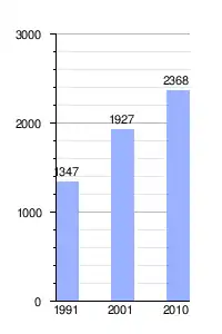 Gráfica de evolución demográfica de Saujil entre 1991 y 2010 |