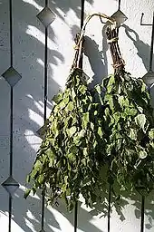 Ocasionalmente, uno usa el frondoso abedúl (Betula pendula) llamado bath broom (vasta en el este de Finlandia) para golpearse suavemente. Esto tiene un efecto relajante en los músculos y también ayuda a calmar la irritación causada por las picaduras de mosquitos. Cuando el calor comienza a ser incómodo, es costumbre irse a un lago, al mar, a una piscina, o ducharse. En invierno, rodando en la nieve o incluso nadando en un agujero cortado en el hielo del lago, un avanto, a veces se usa como sustituto. A menudo, después de la sauna, es costumbre sentarse en el vestidor o en el porche de la sauna para disfrutar de una salchicha, junto con una cerveza o refrescos
