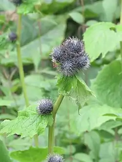 Es una planta perenne con tallo vertical que alcanza un tamaño de 1 a 2 m de altura. Las hojas son grandes en la base del tallo (varias decenas de centímetros), e irregularmente dentadas. Las flores de color púrpura formar una cabeza. Los frutos son aquenios de 8 mm de longitud coronados por un vilano. Las raíces son de color marrón oscuro o gris y miden hasta 40 cm de largo.[3]