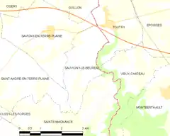 - Situación de Sauvigny-le-Beuréal en un mapa de Francia y de comunas limítrofes Archivado el 7 de enero de 2009 en Wayback Machine. (en francés)
