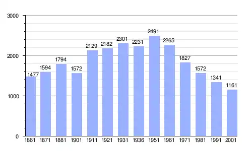 Gráfica de evolución demográfica de Saviore dell'Adamello entre 1861 y 2001 |