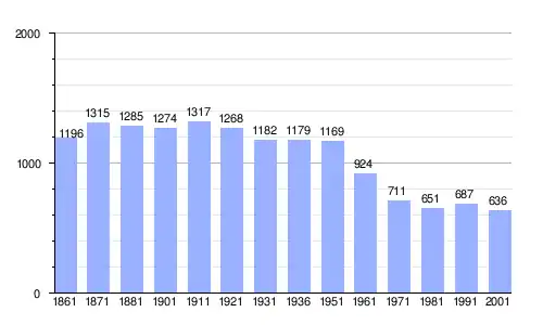 Gráfica de evolución demográfica de Scandolara Ripa d'Oglio entre 1861 y 2001 |