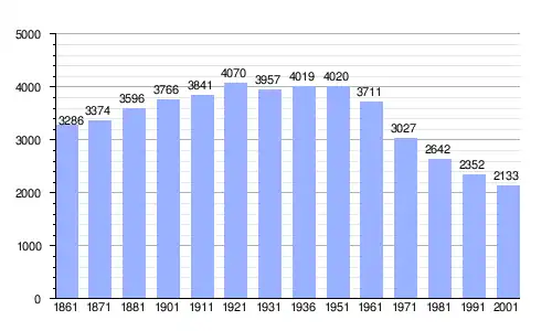 Gráfica de evolución demográfica de Scanno entre 1861 y 2001 |