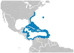 Habitan en gran parte del Atlántico Occidental, donde se encuentra desde Maryland (Estados Unidos), Bermuda y Bahamas hasta Río de Janeiro (Brasil), incluyendo las Indias Occidentales aunque está ausente en el norte del golfo de México.