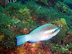 Scarus iseri es una especie de peces de la familia Scaridae en el orden de los Perciformes.