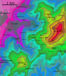 Está ubicado sobre los territorios de los municipios de Ebringen (donde está la cumbre), Schallstadt, Merzhausen, Au, Wittnau, Sölden y del barrio Sankt Georgen de Friburgo.