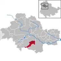 Se encuentra ubicado al norte de la ciudad de Eisenach, al noroeste de Erfurt, la capital del estado.