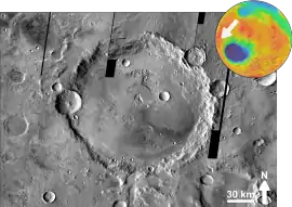 La densidad de cráteres de impacto suele permitir determinar las edades de las superficies de Marte y de otros cuerpos del sistema solar.[5] Las superficies más antiguas suelen tener mayor presencia de cráteres, y sus formas pueden revelar la presencia de hielo en el terreno.