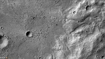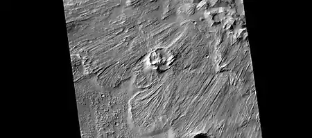 ![]() Detalle de canales en Schaeberle. El lado derecho es parte de la pared erosionada. El lado izquierdo es parte del suelo del cráter. |