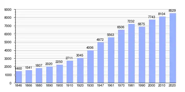 Todos los datos históricos relativos al actual municipio, el siguiente gráfico refleja su evolución demográfica, incluyendo municipios después de efectuada la fusión el 1 de enero de 1977.