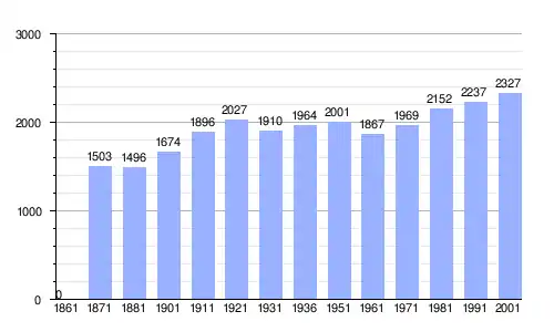Gráfica de evolución demográfica de Schiavon entre 1861 y 2001 |