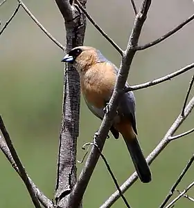 ![]() Tangara canela (Schistochlamys ruficapillus) en el Parque nacional de Serra da Canastra, estado de Minas Gerais, Brasil. | ||