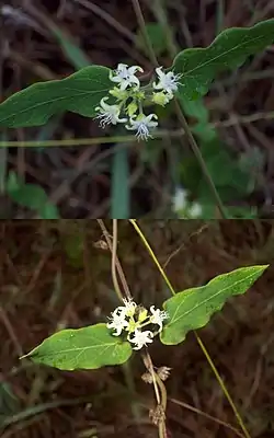 Son enredaderas herbáceas (basalmente ligeramente leñosas), con látex de color blanco. Los brotes poco a densamente pubescentes. Las hojas pecioladas; láminas muy suavemente herbáceas, descolororidas, de 3-9 cm de largo y 1.3 cm de ancho, ovadas a triangular deltadas, basalmente cordadas, el ápice agudo o acuminado, ligeramente ondulados o indiferenciados, adaxialmente rara vez glabros o escasamente a densamente pubescentes, abaxialmente poco a densamente pubescentes o, raramente, glabros.