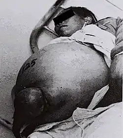 La infección por esquistosomas es seguida por una fiebre aguda de Katayama. Los informes históricos de la enfermedad de Katayama se remontan al descubrimiento de S. Japonicum en Japón en 1904. La enfermedad recibió su nombre de una zona en la que era endémica, el distrito de Katayama, Hiroshima, Japón.[7] Si no se trata, se convertirá en una enfermedad crónica caracterizada por la enfermedad hepatoesplénica y el deterioro del desarrollo físico y cognitivo. La gravedad de S. japonicum se presenta en el 60% de todas las enfermedades neurológicas en los esquistosomas debido a la migración de los huevos de los esquistosomas al cerebro.[8] Los síntomas que puede experimentar una persona infectada incluyen: fiebre, tos, dolor abdominal, diarrea, hepatoesplenomegalia y eosinofilia. [9]