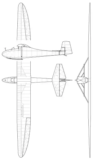 Las primeras 14 costillas interiores tenían el perfil Göttingen 535, cambiando gradualmente las costillas exteriores hasta la última, la vigésimo segunda, a una forma biconvexa simétrica, con una ligera reducción en el ángulo de incidencia. Las puntas alares y los bordes de ataque de las alas estaban recubiertos de contrachapado hasta el larguero principal. La unidad de cola estaba construida en madera. La intención era crear un avión capaz de acometer tanto entrenamientos como vuelos sin motor de campo. Típico para su época, era un monoplano de ala alta arriostrada mediante soportes con un fuselaje de sección hexagonal y cabina abierta.
