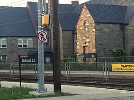 School Lane es una estación en la Ruta 101 de la línea Verde del Metro de Filadelfia. La estación se encuentra localizada en School Lane al oeste de la Avenida Edmonds en Drexel Hill, Pensilvania.[1] La Autoridad de Transporte del Sureste de Pensilvania (por sus siglas en inglés SEPTA) es la encargada por el mantenimiento y administración de la estación.