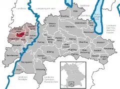 Se encuentra ubicado al sur del estado, en la región de Alta Baviera, en la vertiente norte de las estribaciones de los Alpes, cerca de la orilla del río Lech —un afluente derecho del Danubio— y de la frontera con Austria.