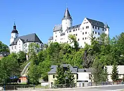 - Esta obra contiene una traducción derivada de «Schwarzenberg, Saxony» de Wikipedia en inglés, publicada por sus editores bajo la Licencia de documentación libre de GNU y la Licencia Creative Commons Atribución-CompartirIgual 3.0 Unported.
