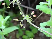 Es una hierba perenne, con rizomas tortuosos de corteza suberosa, glabra o glabrescente. Tallos hasta de 85 cm, ramificados, glabros. Hojas indivisas o pinnatisectas con un segmento terminal grande y hasta 2 segmentos laterales más pequeños, hasta de 3 cm, pinnatinervias o subpalmatinervias, con nervadura sin formar retículo marcado, lustrosas, delgadas, glabras o, a veces, con cortos pelos glandulíferos hasta de 0,2 mm en los nervios, pecíolo y márgenes; las inferiores con limbo completo –si indivisas– o segmento terminal de (2,7)4-12,5 × (1,8)3-9,5 cm, anchamente ovado, triangular-ovado o suborbicular, obtuso, cordiforme o subtruncado en la base, crenado- lobado, a veces con los lóbulos ligeramente superpuestos, pecíolo hasta de 18,5 cm; las superiores con limbo completo –si indivisas– o segmento terminal de 2-10 × 1,7-8,5 cm, ovado, crenado-lobado o lobado-serrado, pecíolo 0,7-7,5(12,5) cm.[1]