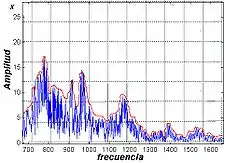 El espectro está conformado de armónicos de la frecuencia fundamental. Si bien el espectro lleva un gran componente cerca de la frecuencia pitch (aprox. 50 Hz), tiene gran cantidad de armónicos, y así tiene componentes de frecuencia que se extiende hasta pasado los 5 kHz. [Flores. 1993]. Otra característica importante es la envolvente espectral. Un análisis adecuado sobre esta característica permite obtener información sobre los diferentes tipos de sonido.
