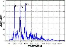 Las cavidades que conforman la cavidad supraglótica actúan como resonadores acústicos. Si se realiza un análisis espectral del sonido luego de haber atravesado estas cavidades, el efecto de la resonancia produciría un énfasis en determinadas frecuencias del espectro obtenido, a las que se les denominara 'formantes'. Existen tantas formantes como resonadores posee el tracto vocal. Sin embargo se considera que sólo las tres primeras, asociadas a la cavidad oral, bucal y nasal respectivamente y proporcionan la suficiente cantidad de información para poder diferenciar los distintos tipos de sonido. En la figura se muestra el espectro de la palabra 'uno', y se denominan F1, F2 y F3 a sus tres principales frecuencias formantes. La amplificación de cada una de estas tres frecuencias depende del tamaño y forma que adopta la cavidad bucal y la cavidad oral, y si el aire pasa o no por la nariz.