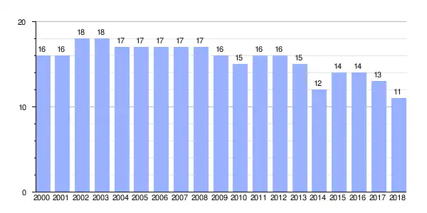 Gráfica de evolución demográfica de Sebio entre 2000 y 2018