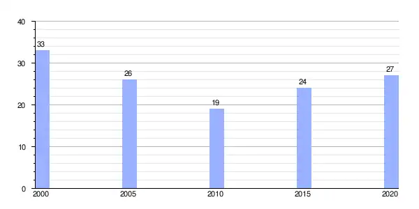 Gráfica de evolución demográfica de Seceda (aldea) entre 2000 y 2020 |