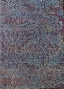 Las sedas han sobrevivido en Europa en las tumbas de figuras importantes, como cubiertas de libros, y en relicarios. También resulta claro que fueron utilizadas como tapices y cortinas en iglesias y en mansiones de la nobleza, como también en vestimentas. Rara vez las fuentes mencionan el origen específico de la seda, pero a veces describen los diseños con suficiente grado de detalle tal que es posible identificarla como bizantina.[23]