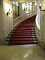 La escalera requiere media revolución por piso. El tramo de escaleras de la gerencia, más cercano a la entrada del boulevard des Italiens, conduce al piso del personal y la sala del consejo en una revolución (la primera media vuelta termina en el entresuelo que alberga oficinas alrededor de los vestíbulos de entrada con techos altos)