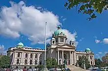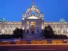 El Parlamento Nacional, sede de la Asamblea Nacional de Serbia, se construyó en el terreno limitado por las calles Takovska, la Plaza de Nikola Pašić y Vlajkovićeva, en la inmediata cercanía del Antiguo]][1] y del Nuevo Palacio real[2] y del Jardín real (hoy Pionirski park), con los que forma un conjunto arquitectónico-funcional. Se edificó entre 1907 y 1936. La historia de su construcción, con numerosas interrupciones y modificaciones del proyecto y con la participación de los arquitectos nacionales más importantes de la primera mitad del siglo XX, refleja simbólicamente la tumultuosa historia y la vida parlamentaria del estado serbio y luego del yugoslavo.