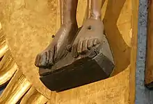 Durante la crucifixión romana la herramienta de apoyo fijada a la cruz tenía la utilidad de darle apoyo a los pies y por tanto, del peso corporal.
