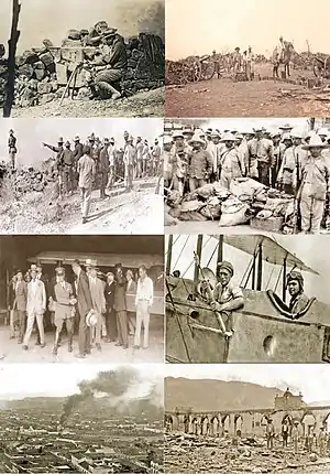 ![]() 1.Soldado utilizando una ametralladora 2.Toma del cerro Juan A. Laínez 3.Tropas en el sector de "El Berrinche" 4.Tropas del general Tosta Carrasco 5.El coronel Fierro es recibido en el Aeropuerto Toncontín 6.Aviadores antes del bombardeo a Tegucigalpa 7.Incendio al correo nacional 8.Escombros del mercado San Isidro | ||||
