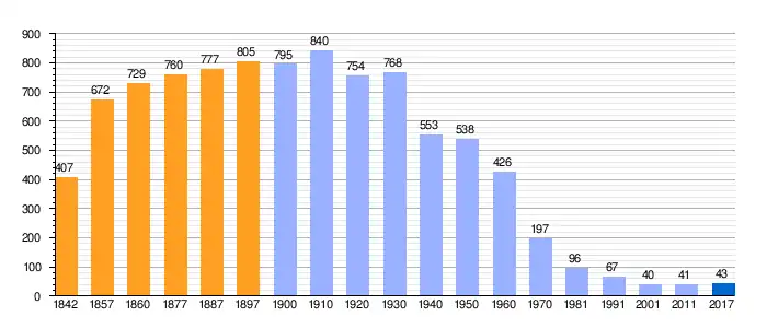 Población de derecho (1842-1897, excepto 1857 y 1860 que es población de hecho) según los censos de población del siglo XIX. Población de derecho (1900-1991) o población residente (2001-2011) según los censos de población del INE. Población según el padrón municipal de 2017 del INE. |