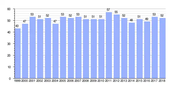 Gráfica de evolución demográfica de Seixurra entre 1999 y 2018 |
