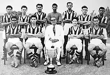 La Federación Malaya que ganó la Copa Merdeka en 1958, cinco años antes de formar Malasia. En la imagen aparece Tunku Abdul Rahman (centro), el entonces primer ministro de la Federación Malaya.