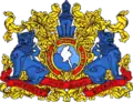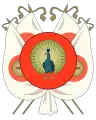Blasón | Un mapa de Birmania en oro, con fondo de gules, rodeado por un laurel del mismo metal | |