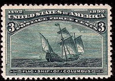 Se titula El barco abanderado de Colón y representa a la Santa María. Se ha considerado que está basado en un grabado español, pero la fuente es desconocida. El grabado del sello fue realizado por Robert Savage. Aunque se imprimieron más de 11 millones, no correspondía a ninguna tarifa postal estándar de 1893. En lugar de eso, se consideró un sello para combinar en envíos que tuvieran un precio mayor.[8]