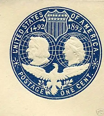 Junto a los sellos se emitió una serie de cuatro sobres, o papelería postal preimpresa. Esta serie incluía valores de 1 ¢, 2 ¢, 5 ¢ y 10 ¢ que representaban un retrato de Colón y un retrato alegórico de la Libertad.