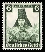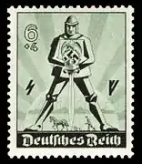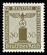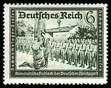 Durante el Tercer Reich, la empresa que administraba el servicio postal de Alemania, la Reichspost, estaba dedicada a servir a los intereses del partido nazi empleando a los sellos postales como otro medio propagandístico más. La estampilla con la cabeza de Hitler se convirtió en un sello de uso común. Durante el último año antes del final de la guerra, la inscripción "Deutsches Reich" en los sellos fue cambiada a Grossdeutsches Reich (Gran Imperio Alemán).